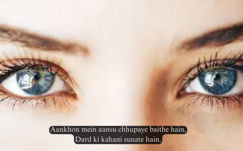 Aashiq ki nigahon ki chamak se le kar aansuon bhari aankhon mein chhupe dard tak, yeh shayari insaani ehsaasaat ke mukhtalif pehluon ko aankhon ke zariye dekhti hain. Chahe aap romance ke liye inspiration talash kar rahe hon ya sirf lafzon ki funkaari ki qadr kar rahe hon, yeh compilation Roman English mein taaza aur asli lines pesh karti hai, jo thematic headings ke tehet tartib di gayi hain taake navigation aasaan ho.